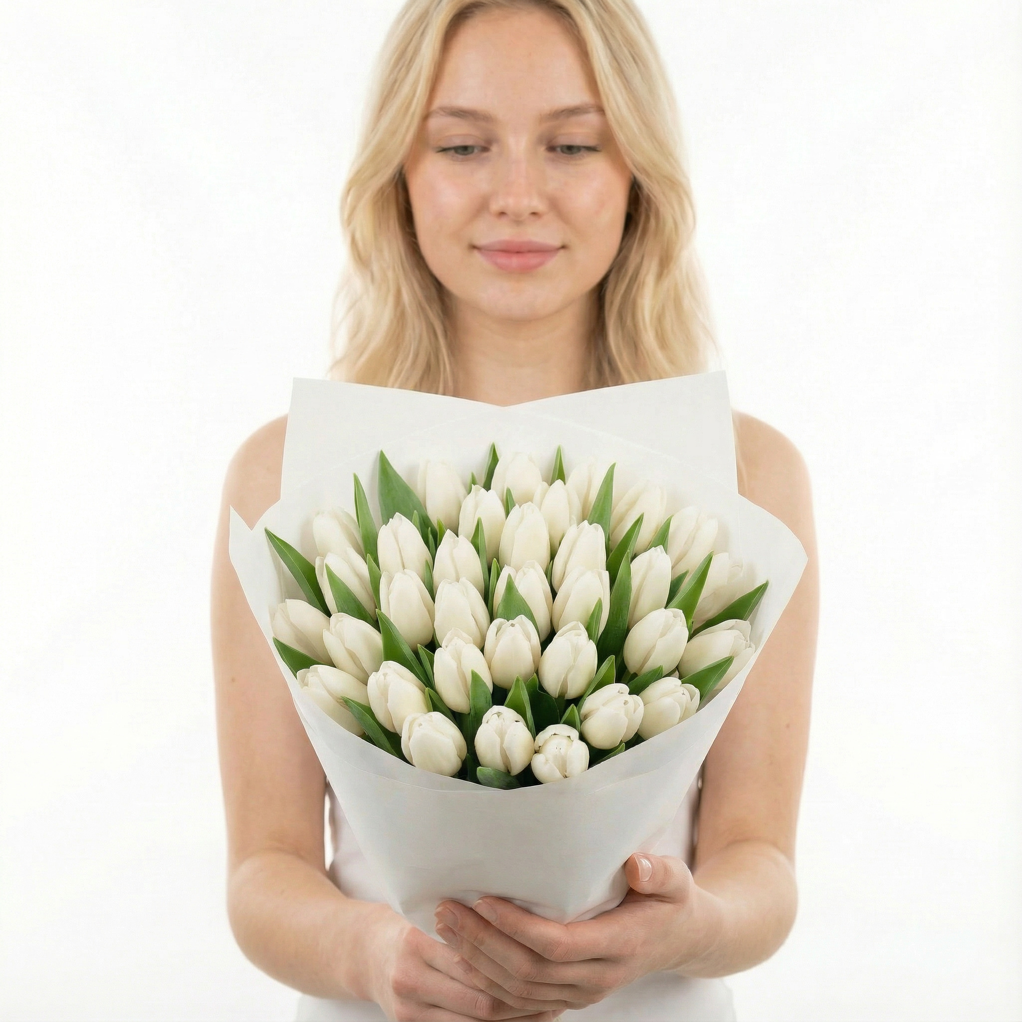 Bukiet 25 białych tulipanów